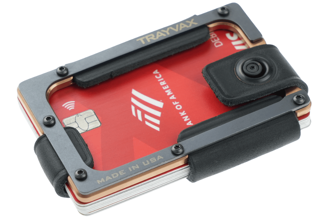 The Trayvax Contour is their most refined leather wallet to date. The bottom plate is highly precise, CNC-machined stainless steel. The top plate is PVD-coated for durability. Each plate is wrapped in top-grain oil-tanned leather, which will develop a patina as a constant reminder of your journey. Ideal for use as a front-pocket wallet, the sleek design and slim profile ensure a compact and lightweight everyday carry.
