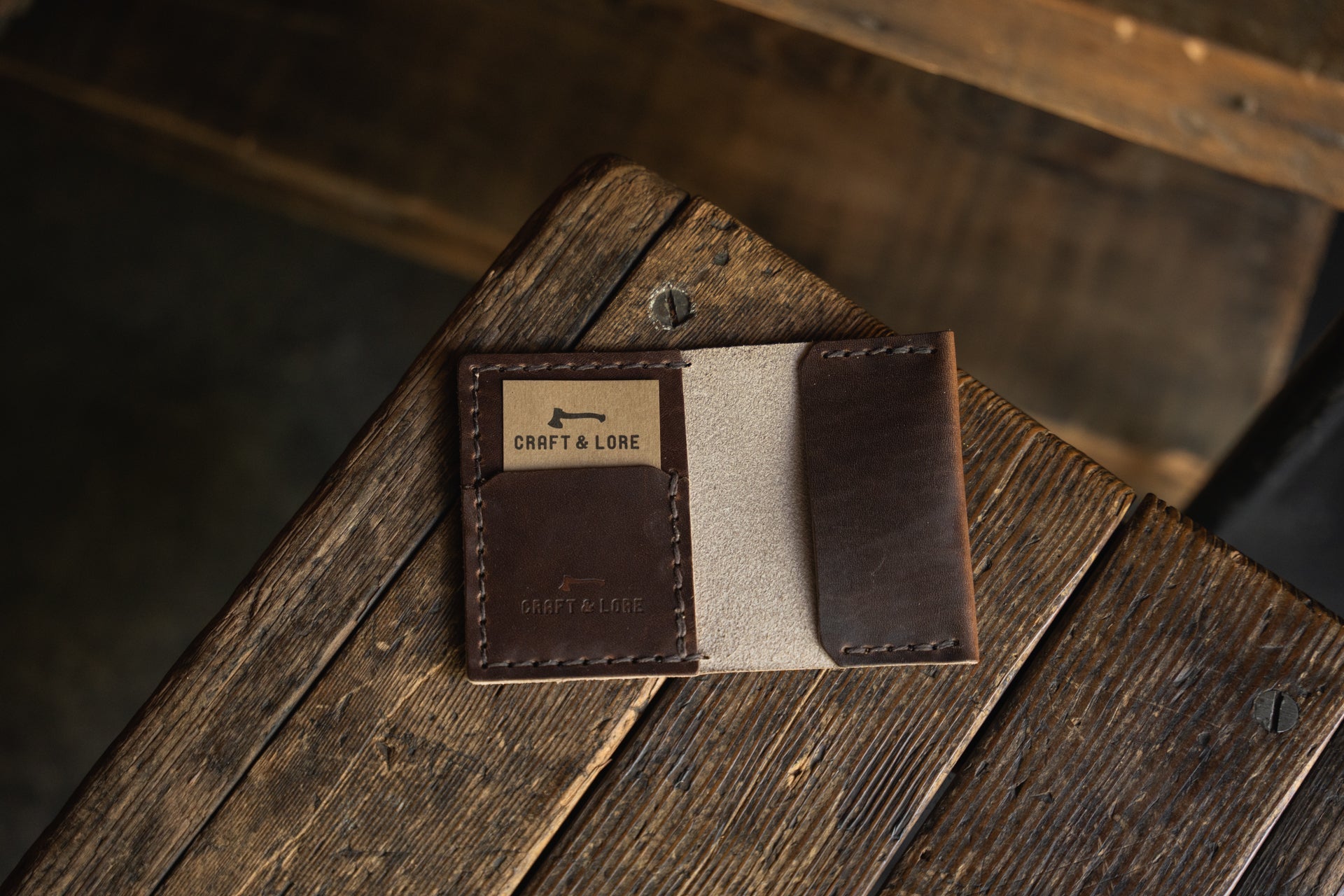 A quality-made leather folding wallet, hand-stitched for durability, and available in various quality leather options and colors. Built and ready to go. Typically ships within 2 business days. Slim profile wallet packs a lot, and they work great as a front pocket and back pocket wallet.